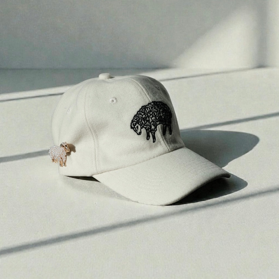 Crafted from a soft, wool-like fabric with a felted texture, this cap offers structure, comfort, and everyday versatility. It features an adjustable back strap with a sport-style buckle for a secure fit, along with a signature gold sheep pin for a subtle, elevated detail.